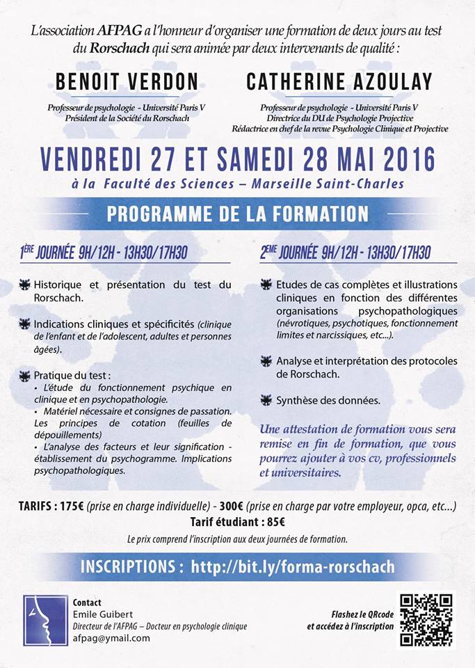 Voici un Jeu-concours pour assister à cette formation au Rorschach animée par Benoît Verdon et Catherine Azoulay!